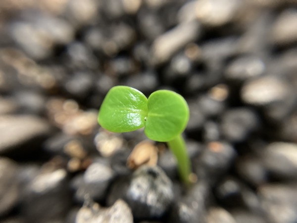 こっちの種も分かりづらいですが、割れた所から根が土に向かって伸び始めています。