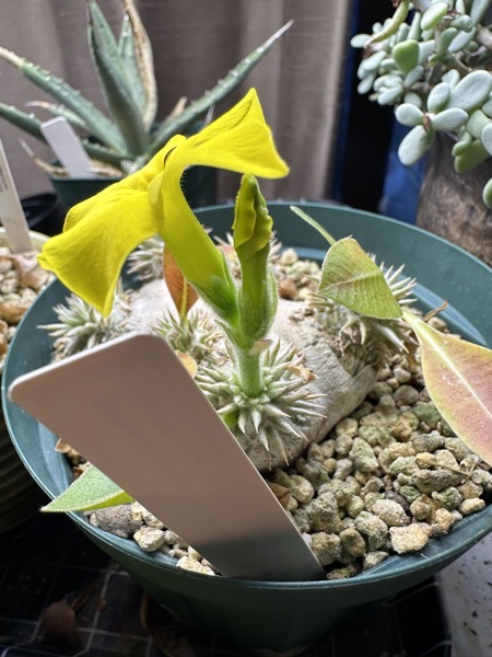 ホーム > パキポディウム・ブレビカウレ / 花 パキポディウムに花が! まだ1月だというのに。。。 パキポディウム・ブレビカウレ、まだ一月だというのに、花が咲いてしまいました。。。 お正月、2週間ほど留守にしていて(暖房なし)、帰ってきたら、花芽が出ていて、数日で咲いてしまいました。 まだ、いくつか花芽が出ています。 どうも最近、冬型も、夏型もなんだか体調不良のような気がします。。。 いろいろ様子を見て、調整していかないと。 ⏬ぜひ!応援お願いします!⏬ カテゴリー:パキポディウム・ブレビカウレ花 管理人 シェアする Twitter でシェア LINE でシェア Facebook でシェア Feedly で購読 関連投稿 ケラリア・ピグマエア / 成長記録 / 花 ケラリア・ピグマエア開花 バンダコスティリス チャーム ‘ブルームーン’ / ブーファン・ハエマンソイデス / 成長記録 / 胡蝶蘭 / 花 洋蘭の花芽が出てきました 実 / 花 ウォーキングコース沿いの植物たち パキポディウム・ブレビカリックス / 実生 / 成長記録 / 花 パキポディウム・ブレビカリックス成長記録 モンソニア・ムルチフィダ / 成長記録 / 花 モンソニア・ムルチフィダの花が咲きました モンソニア・バンデリエティアエ / 発根管理 / 花 モンソニア・バンデリエティアエ発根管理(2) アルブカ・コンコルディアナ / パキポディウム・ブレビカリックス / パキポディウム・伊藤ハイブリッド / モンソニア・ムルチフィダ / 花 まもなく花盛り アルブカ・コンコルディアナ / パキポディウム・ナマクアナム / パキポディウム・ブレビカウレ / モンソニア・ムルチフィダ / 成長記録 冬型がお目覚め コメントを残す コメントをキャンセルメールアドレスが公開されることはありません。 ※ が付いている欄は必須項目ですコメント ※ 名前 メール サイト 次回のコメントで使用するためブラウザーに自分の名前、メールアドレス、サイトを保存する。 コメントするΔ このサイトはスパムを低減するために Akismet を使っています。コメントデータの処理方法の詳細はこちらをご覧ください。 前の投稿 エンセファラルトス・ホリダス、フラッシュ