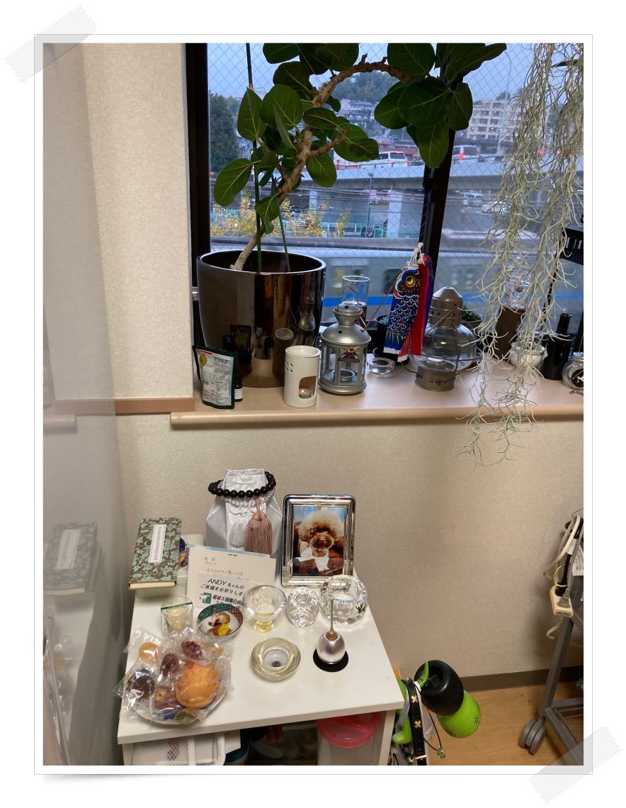 アンディさんは、出窓がわのアンディさんのタンスの上に引っ越していただきました😆