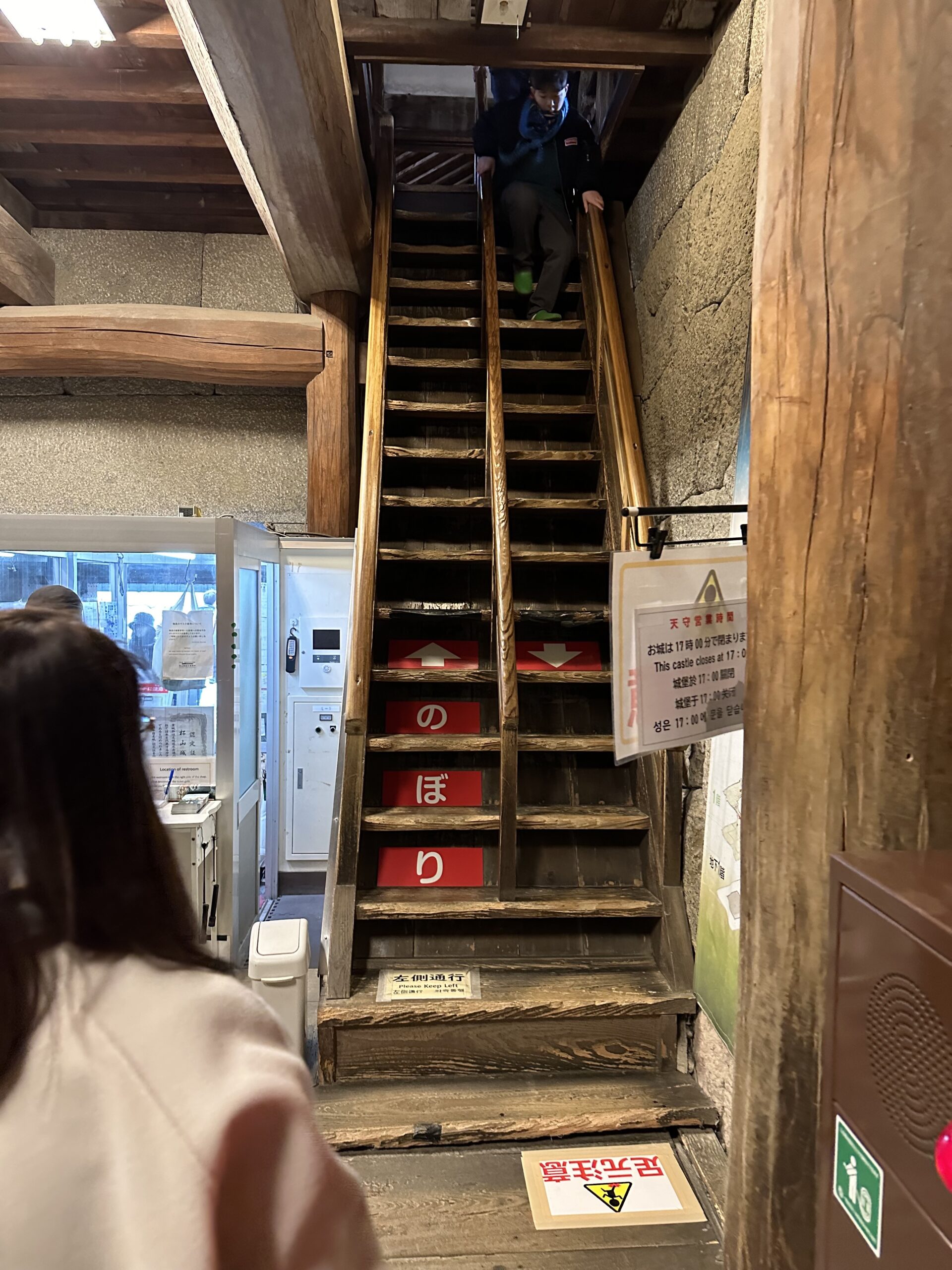 上りと下とに半分に分けているので、狭い階段がさらに狭くなっています😆