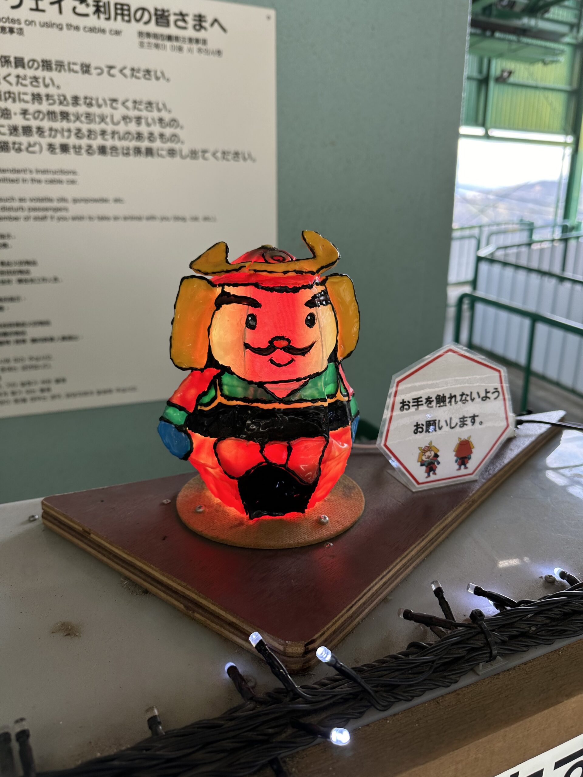 ロープウェイの駅の飾り、なかなか愛嬌のある行燈です。赤い顔が、酔っ払っている様にも見えますね😆