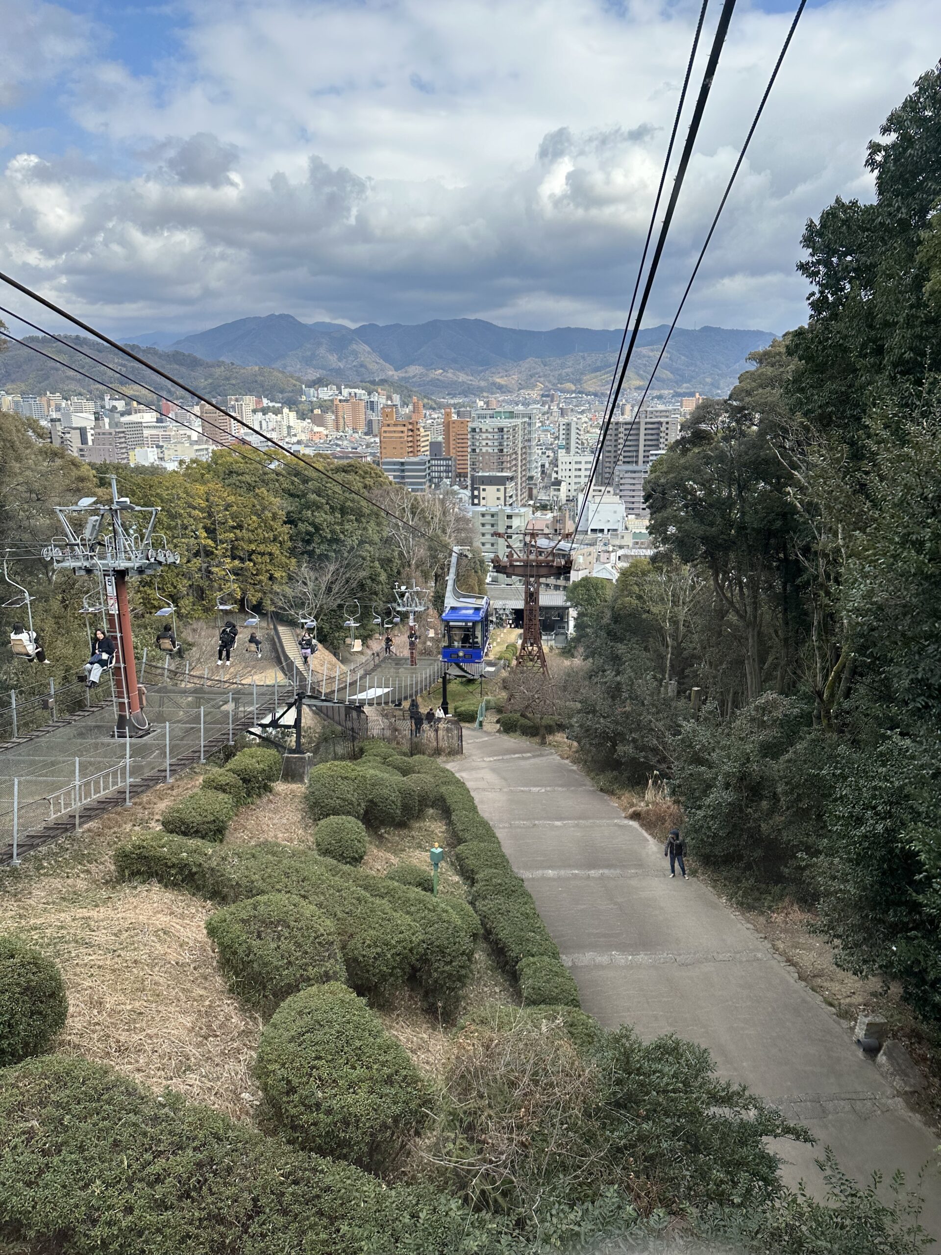 ロープウェイ駅に比較的近い駐車場に車を停めて、ロープウェイでお城に向かいます🦶