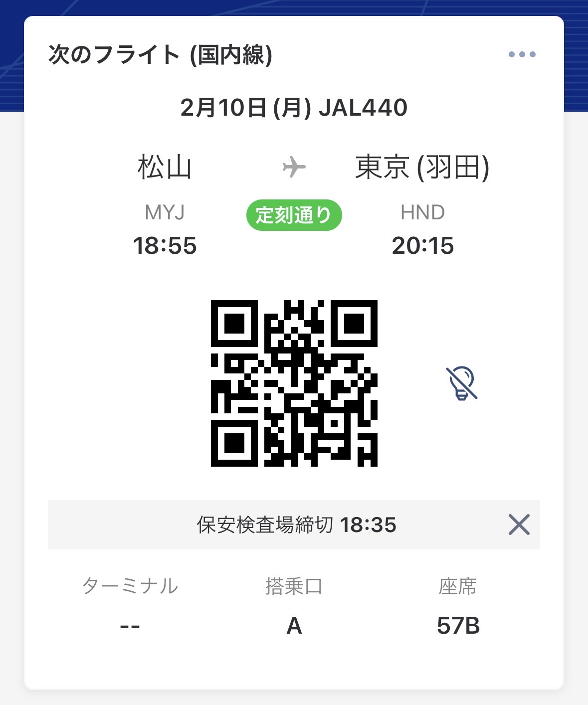 18:55発の飛行機ですので、早々に機上の人となります