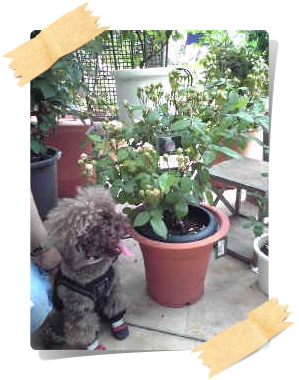 花屋さんの前には、パグの看板犬君(ちゃん?)が居て、アンディ君を見つけるやいなや、「ガウガウ!」っと歓迎の突撃を!