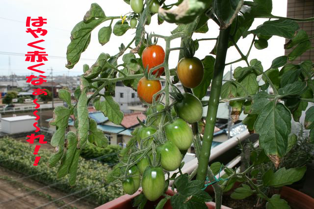 家庭菜園の、ミニトマトもぼちぼち赤く成りだしました。