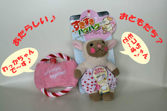 アンディ君の、新しいお友達です♪わっかちゃんと、モコちゃんです♪